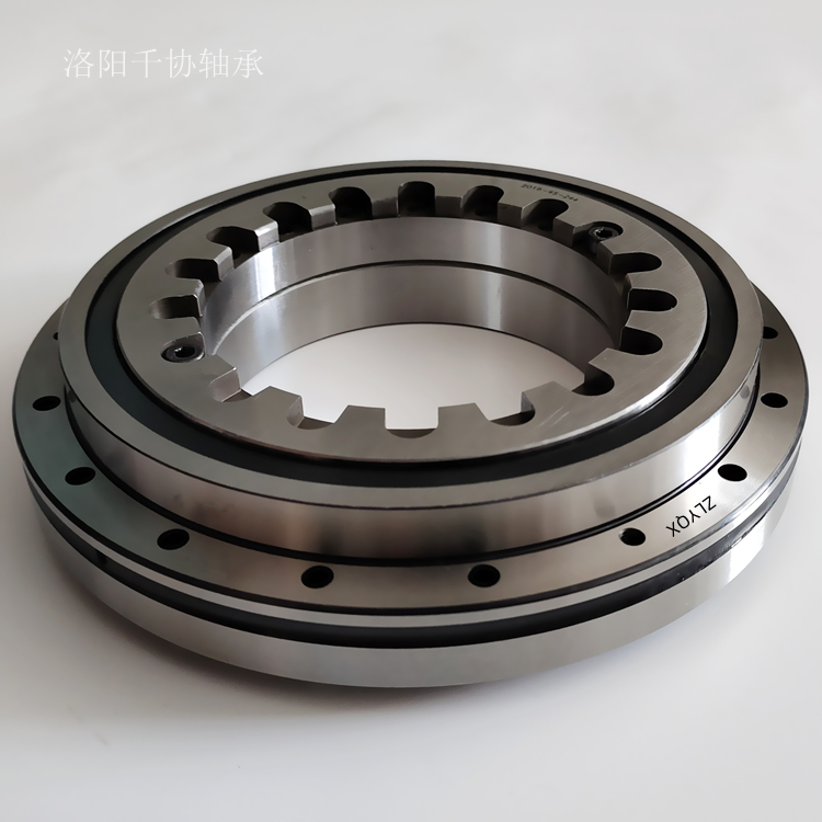 ZKLDF系列推力角接觸球軸承包括一個整體外圈、兩個內圈和兩組鋼球及保持架組件,接觸角為60度。外圈和內圈帶有安裝孔,方便通過連接螺栓對軸承進行安裝固定。軸承自身通過聯接螺栓固定,保證安裝運輸和搬運。ZKLDF推力角接觸球系列轉臺軸承的兩側有密封蓋,可防止外部污物、雜質的進入和內部潤滑脂的泄漏。...